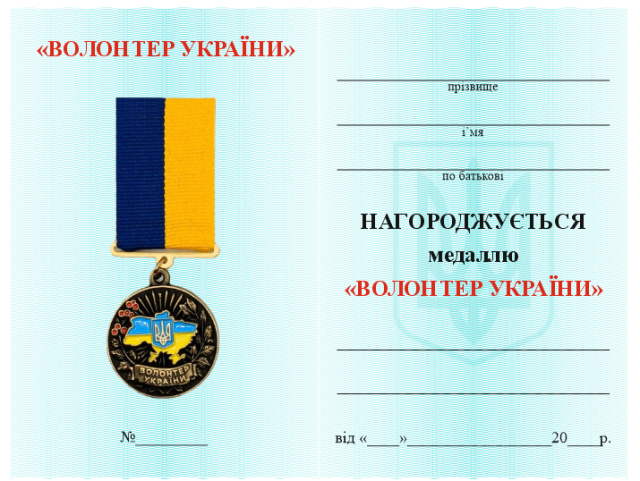 - Посвідчення з печаткою голови ГО "Всеукраїнської Нагородной Ради" (якщо нагородження відбувається від імені організації).